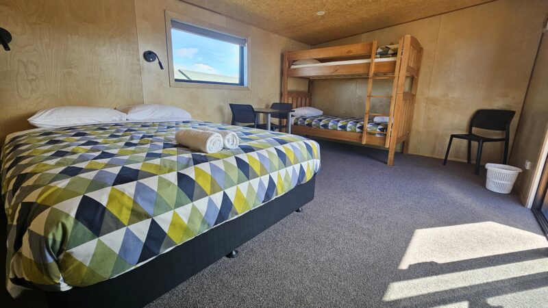 These cabins are a fantastic option for those travellers on a budget. They have a queen bed and set of single bunks. Heater, full bed linen and bath towel provided. This unit does not have a bathroom so have full access to all communal facilities. Bring own cutlery and cooking equipment or hire from reception.